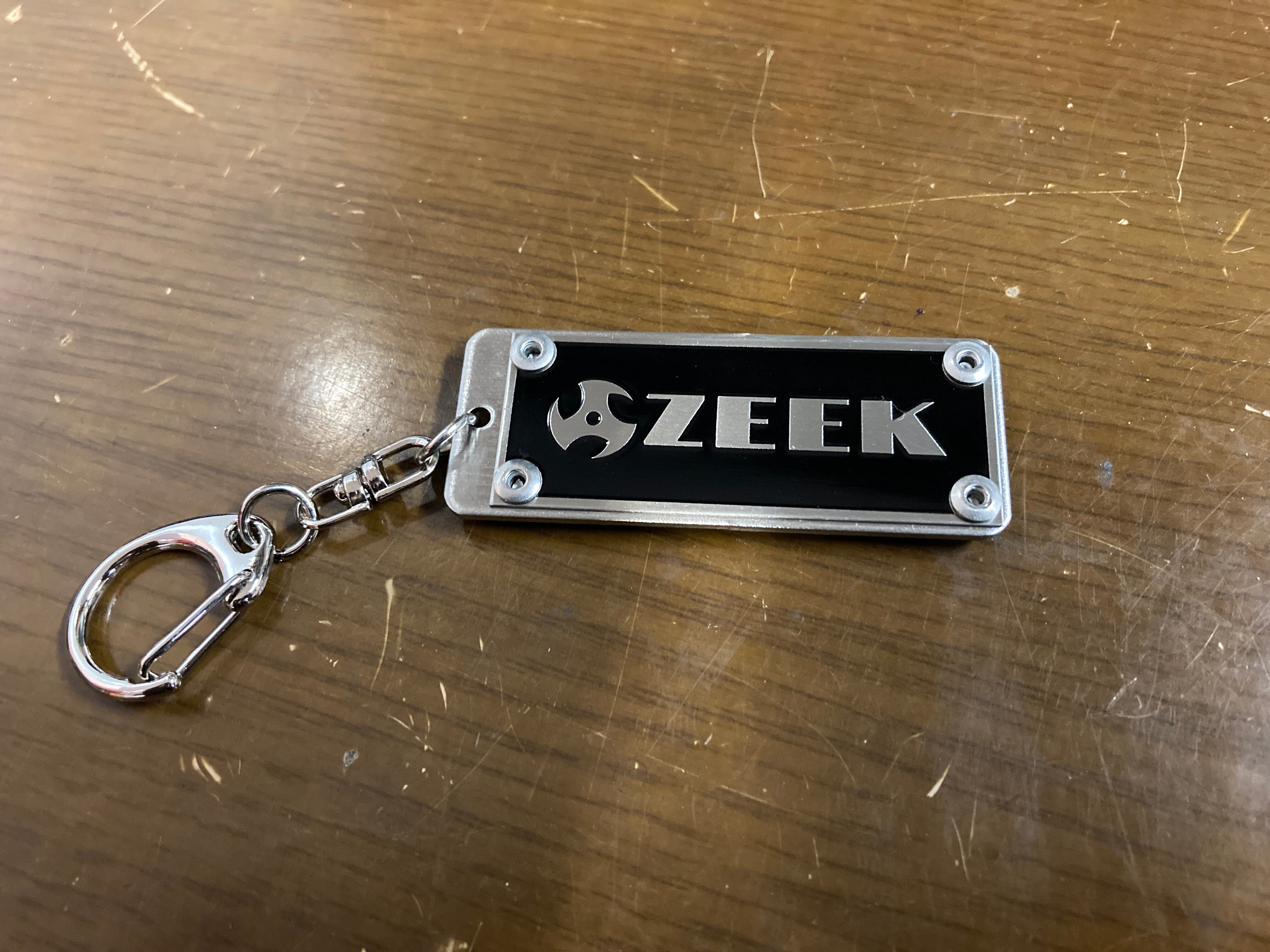 SEIRANエンブレムと同仕様のオリジナルキーホルダーが登場。重厚感のあるSUS304ステンレス鋼プレートにZEEKのロゴをリベットし、シンプルながらも存在感を放つデザインです。